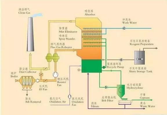 烟气脱硫的大型脱硫装置称为脱硫塔,而用于燃煤工业锅炉和窑炉烟气脱硫的小型脱硫除尘装置多称为脱硫除尘器。在脱硫塔和脱硫除尘器中,应含SO2的烟气,对烟气中的SO2进行化学吸收。为了强化吸收过程,提高脱硫效率,降低设备的投资和运行费用,脱硫塔和脱硫除尘器应满足以下的基本要求: